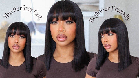 Pelucas cortas y rectas con flequillo de Brennas Hair, peluca de cabello humano brasileño Remy, peluca completamente hecha a máquina para mujeres, peluca Bob sin encaje y sin pegamento